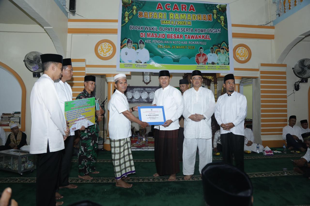 ROKAN HULU-(RI)-Pemerintah Kabupaten Rokan Hulu melakukan kegiatan Safari pertama pada Ramadhan 1444 H/2023 M. Kegitan angsung dillaksanakan oleh Wakil Bupati Rokan Hulu H.Indra Gunawan diawali pada Kecamatan Pendalian IV Koto tepatnya di Masjid Besar Tawakkal Desa Pendalian, Selasa (28/3/2023).