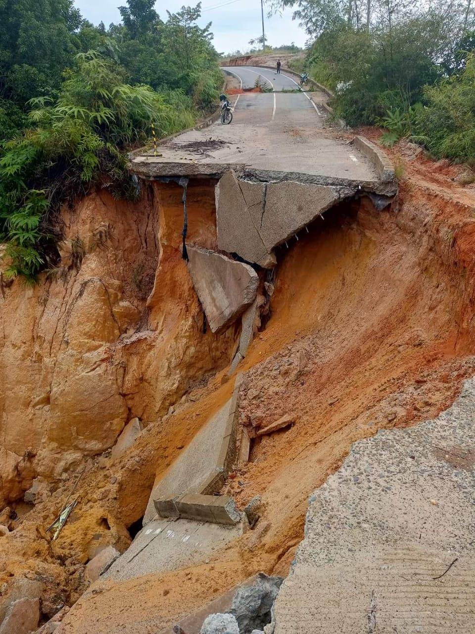 "Bagi masyarakat yang akan menempuh jalan ini untuk sementara untuk kendaraan roda 4 tidak bisa dilalui, hanya bisa menggunakan roda 2 saja dan harus hatu-hati,"kata Wabup, Rabu (21/2/2024).